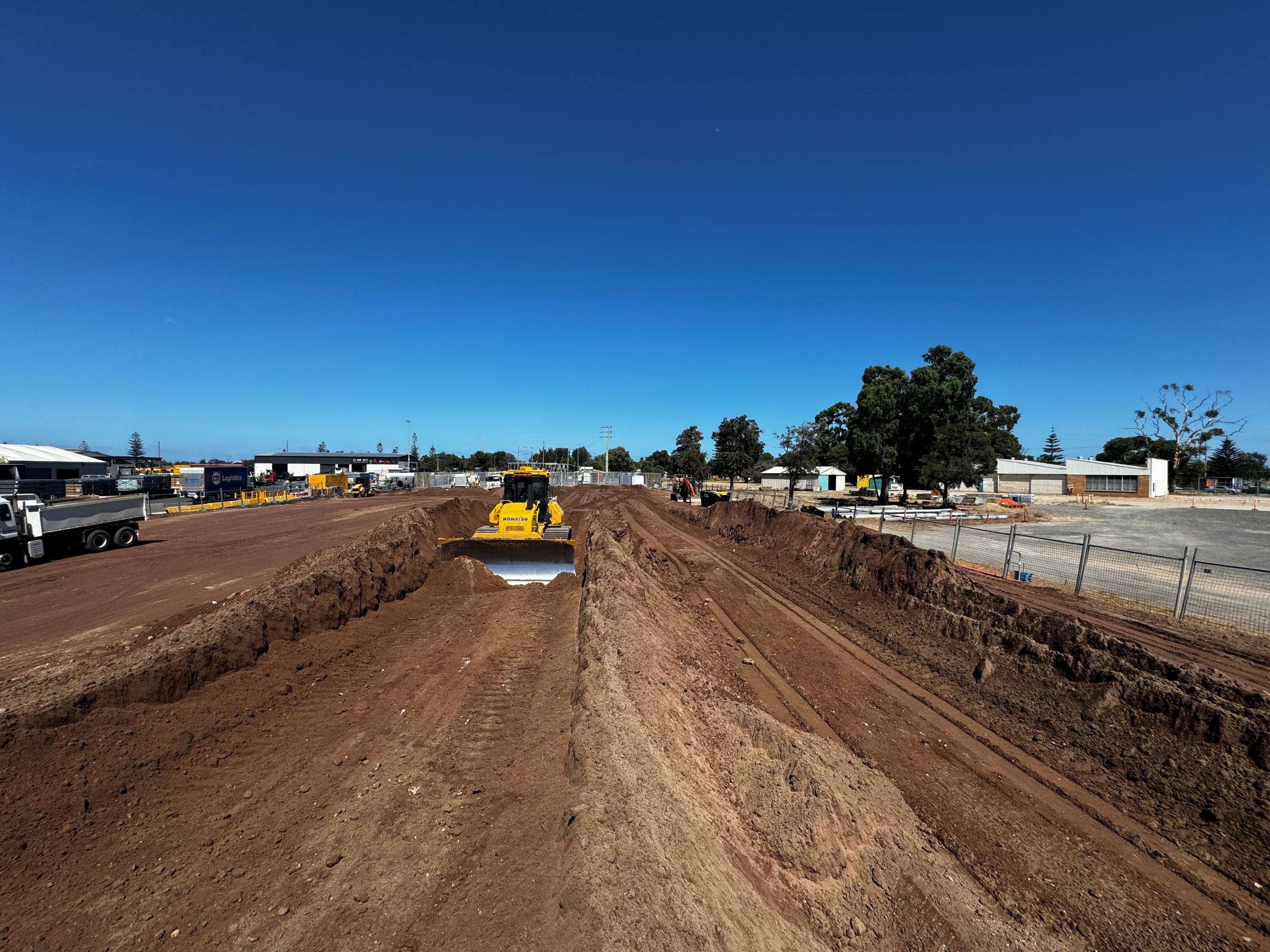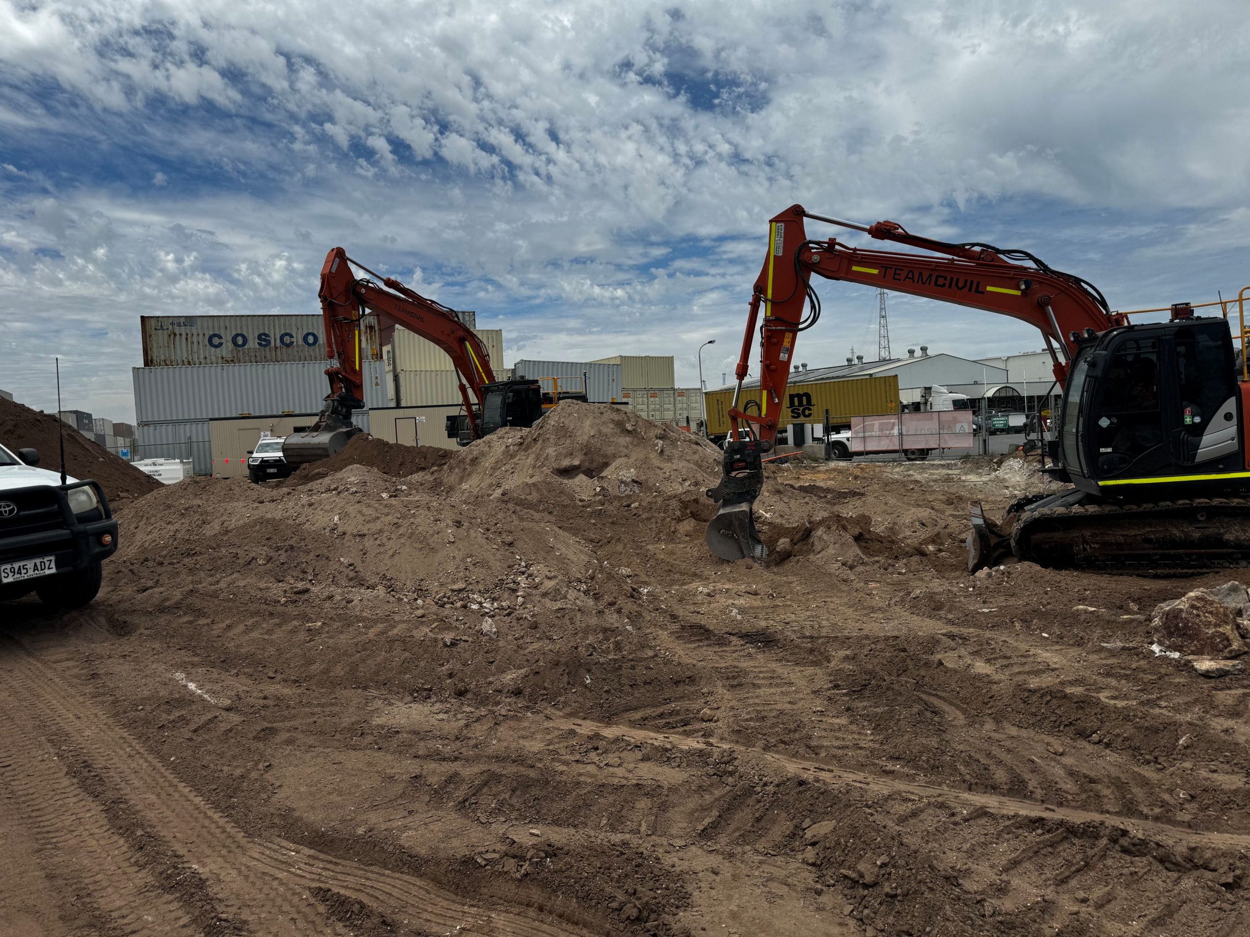 Team Civil delivered the civil package for the Energy Logistix development at Creswell Road, Largs North. The project involved bulk and detailed earthworks, ground improvement, pavement construction, and preparation of structural and external elements to strict design tolerances. All works were supervised and delivered in compliance with engineering specifications, geotechnical requirements, and site safety standards.